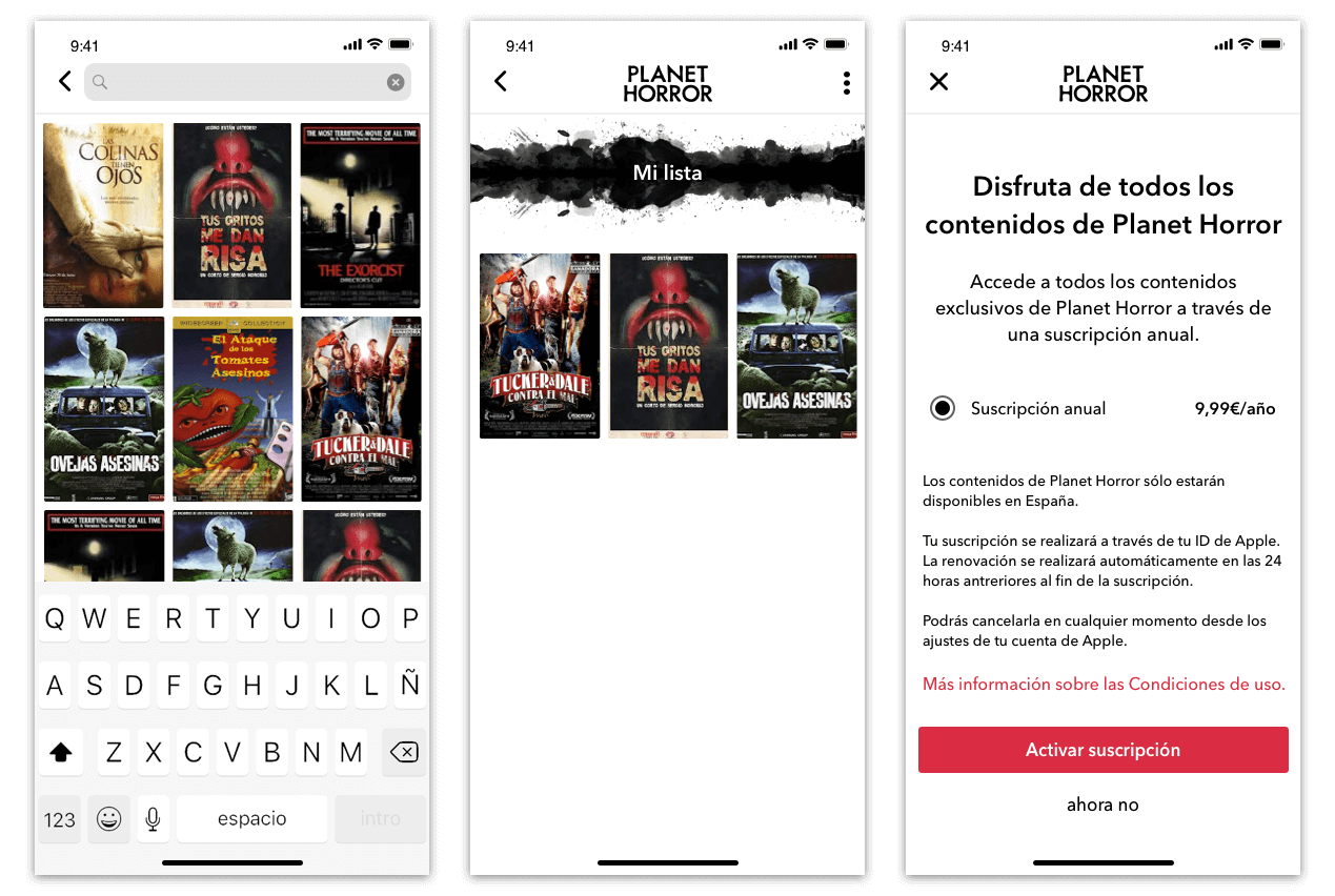 Users can access exclusive horror content and benefit from new releases that are regularly updated, search for movies, and save their favorites in "My List" for later viewing.