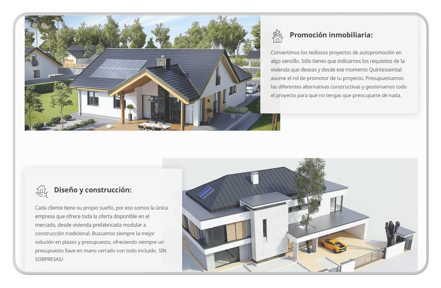 Real estate company, that offers a comprehensive solution for construction and self-promotion projects, offering the widest range of construction solutions currently available on the market. From modular homes, pre-fabricated structures and of course traditional construction. Always with a turnkey budget with everything included.