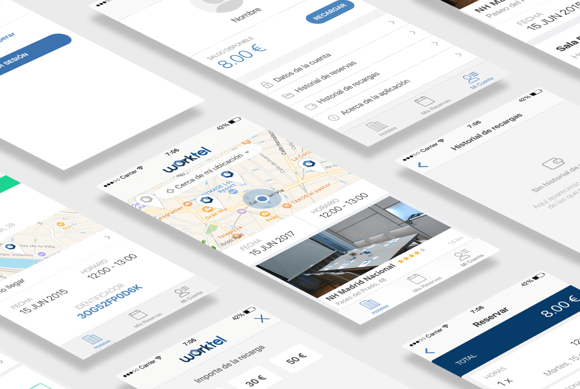 This project integrates the development of the web platform, the iOS / Android applications, the front of the back, from which availability is managed and the backend from which the applications and the web page are fed. Hotels have a backend where they can manage the availability of the workspaces they want to appear in the application.